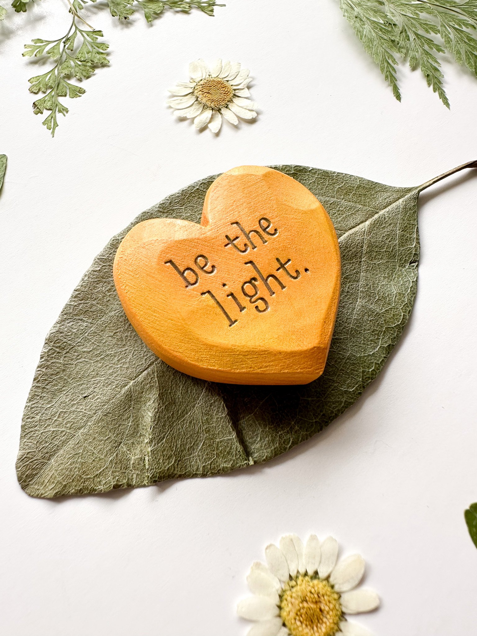 Be the Light Orange - Mini Wood Burned Heart