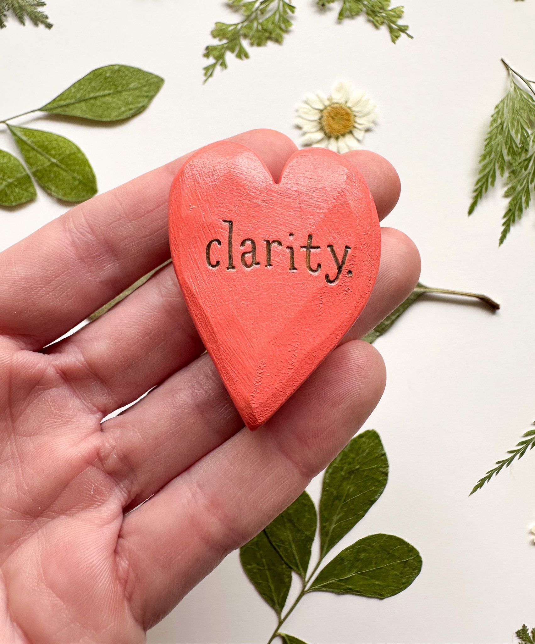 The heart is hand cut, sanded, wood burned, painted, and varnished.