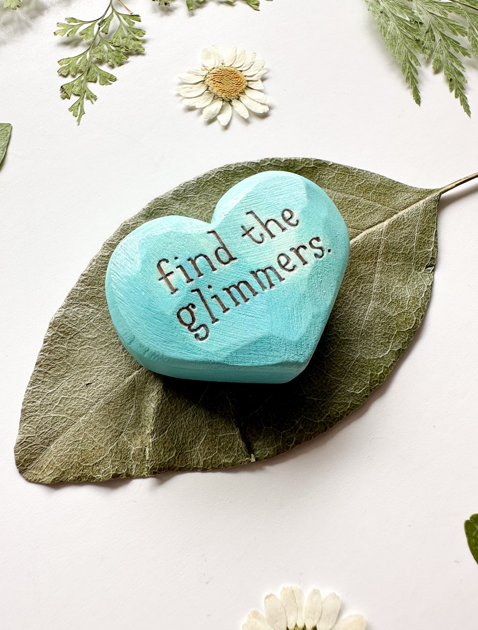 Find the Glimmers Blue - Mini Wood Burned Heart