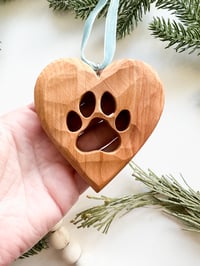 Preorder for one hand cut and stained paw print ornament. Choose your ribbon color using the drop down menu below.