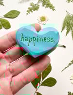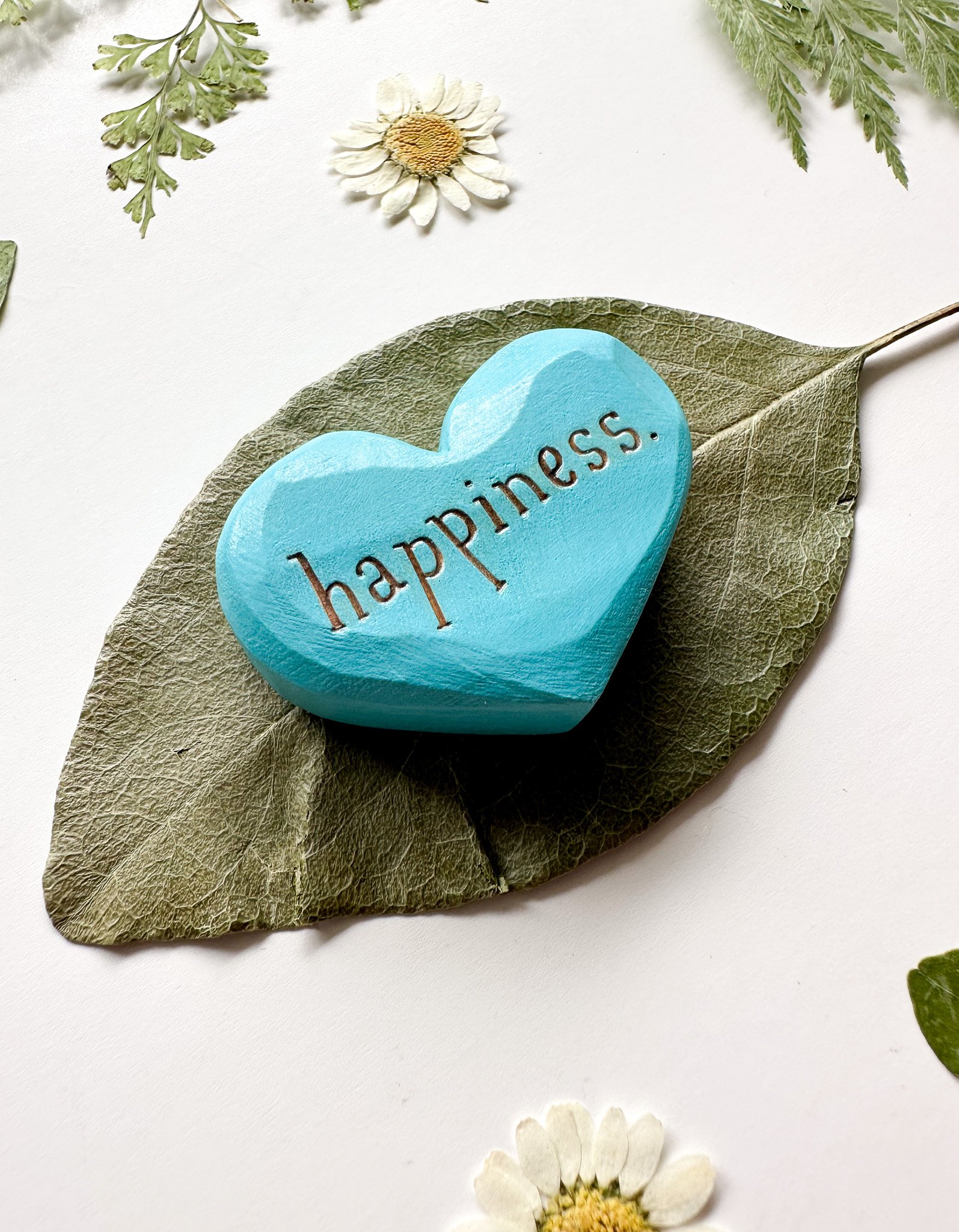 The heart is hand cut, sanded, wood burned, painted, and varnished.
