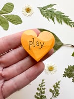 The heart is hand cut, sanded, wood burned, painted, and varnished.