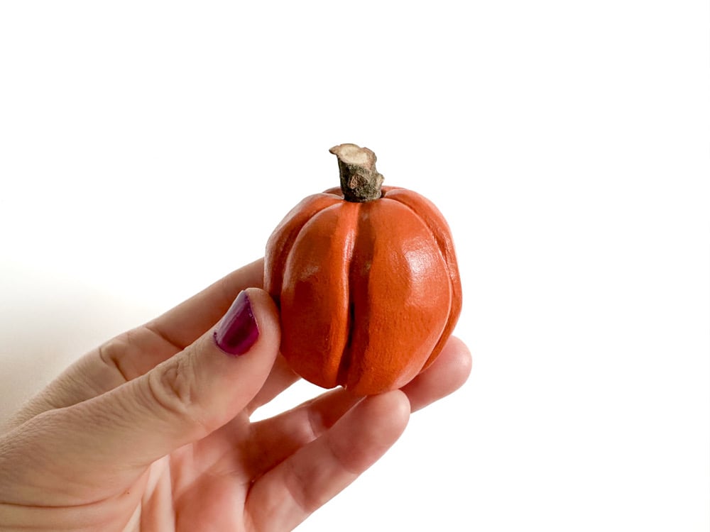 Each pumpkin is hand cut from branch trimmings, sanded, carved, painted, and varnished. No two are exactly alike!