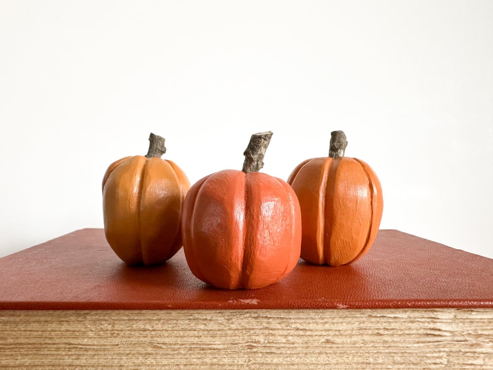 Pumpkins range in size from around 2-2.25 inches in height.